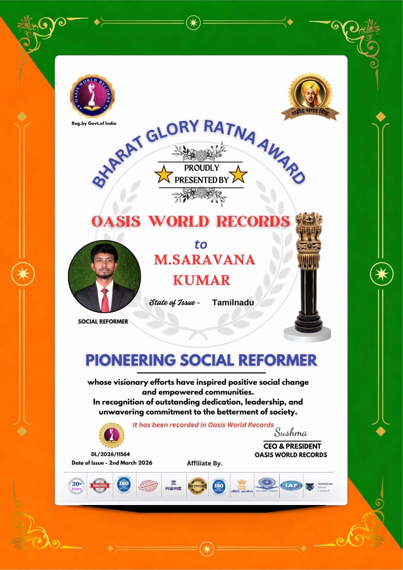 M. SARAVANA KUMAR को Shourya Diwas पर Bharat Glory Ratna Award से सम्मानित किया गया