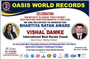Vishal Damke – International Best Karate Coach – Bhartiya Ratan Award for his excellent work, outstanding performance and remarkable role in the field of Sports which is helpful in Transforming the Nation.