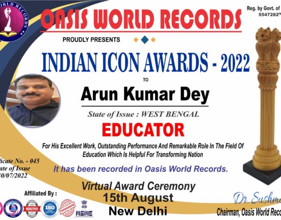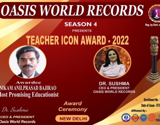 Teacher Icon Award 2022 presented to Nikam Anilprasad Bajirao for his excellent work, outstanding performance and remarkable role in the field of Education.