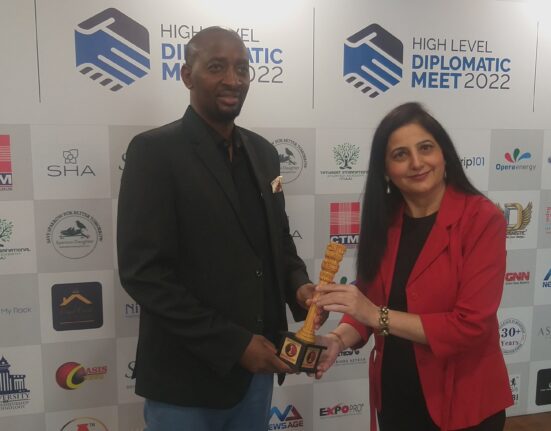 H.E. Gabriel P. Sinimbo, Namibia Felicitated by DR. Sushma , CEO – Oasis Group Cherished movement with H.E. Gabriel P. Sinimbo, Namibia.