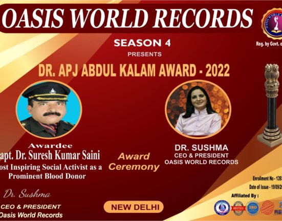 DR. APJ Abdul Kalam Award is presented to Capt. DR. Suresh Kumar Saini Haryana state for his contribution in the field of Social.