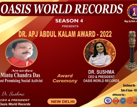 DR. APJ Abdul Kalam Award is presented to Mintu Chandra for his excellent work, outstanding performance and remarkable role in the field of.