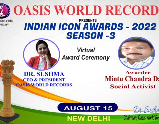 Indian Icon Award presented to Mintu Chandra Das for his excellent work, outstanding performance and remarkable role in the field of Social.