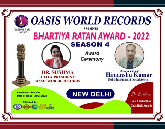 Bhartiya Ratan Award Presented to HIMANSHU KUMAR for his excellent work, outstanding performance and remarkable role in the field of Education & Social.