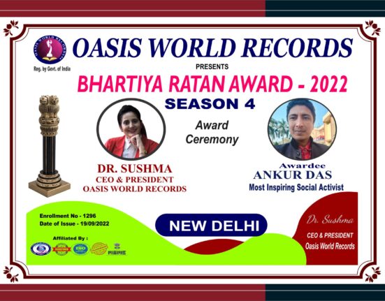 Bhartiya Ratan Award Presented to Ankur Das for her excellent work, outstanding performance and remarkable role in the field of Social Work which.
