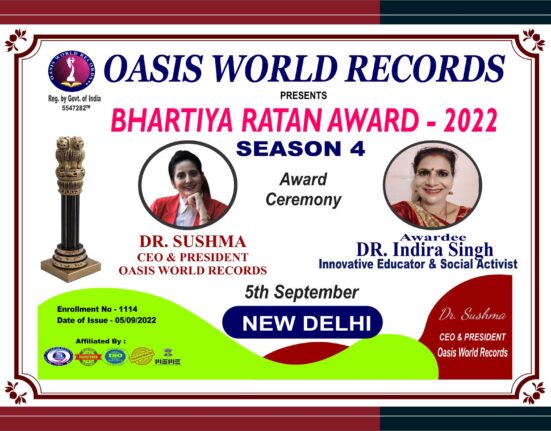 Bhartiya Ratan Award Presented to DR. INDIRA SINGH for her excellent work, outstanding performance and remarkable role in the field of Education &.