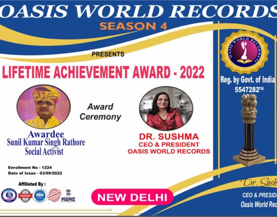Bhartiya Ratan Award Presented to SUNIL KUMAR SINGH RATHORE for his excellent work, outstanding performance and remarkable role in the field of Publication.