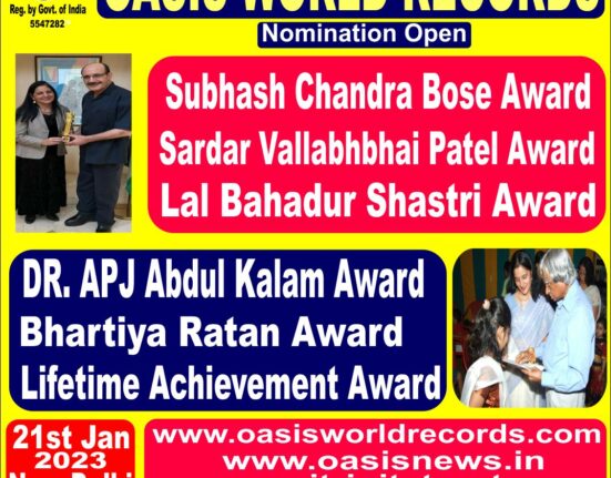 22 Jan 2023, Saturday, New Delhi Oasis World Records- Nomination open for most prestigious awards Hurry Up and Nominate Yourself For The.