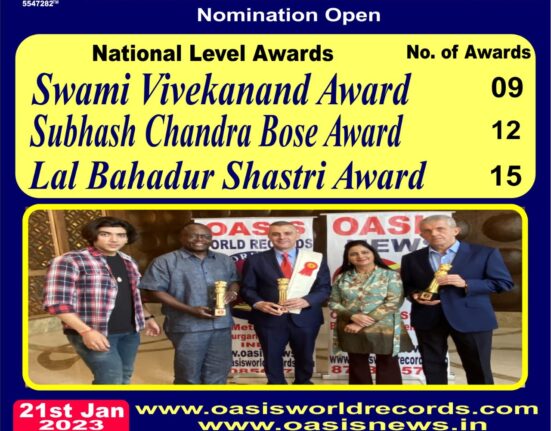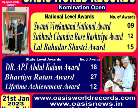 22 Jan 2023, Saturday, New Delhi Oasis World Records- Nomination open for most prestigious awards Hurry Up and Nominate Yourself For.