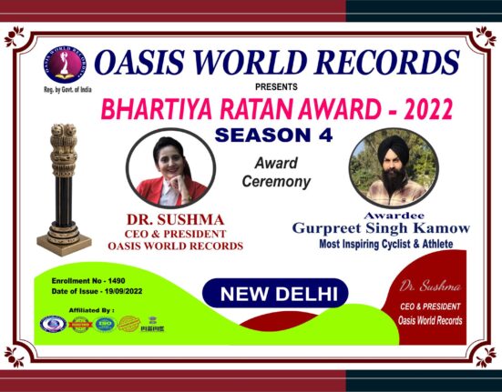Bhartiya Ratan Award Presented to Gurpreet Singh Kamow for his excellent work, outstanding performance and remarkable role in the field of Sports which.