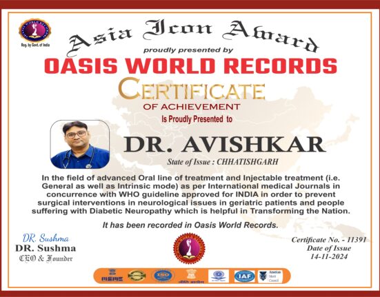 Dr Avishkar MD ( Physician and Neurologist ) ASIA ICON AWARD In the field of advanced Oral line of treatment and Injectable treatment.