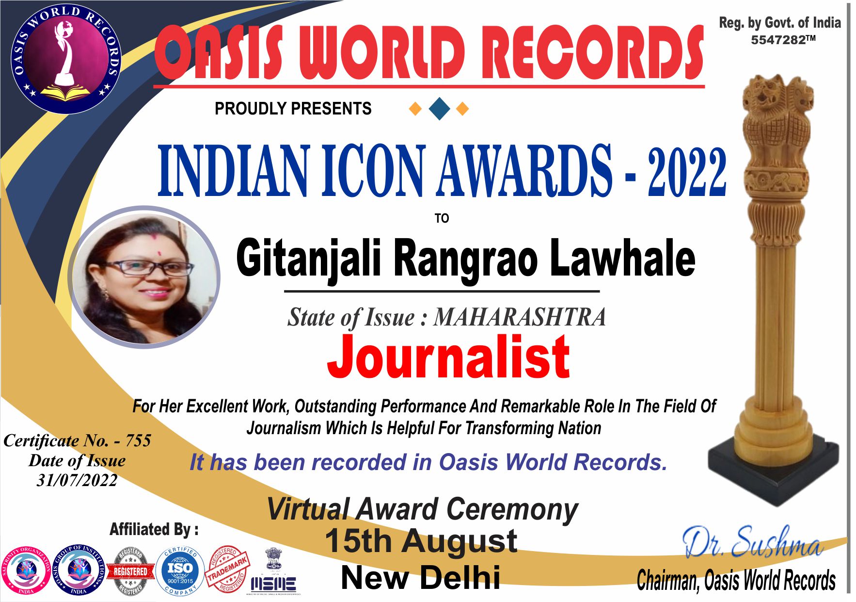 Indian Icon Award 2022 presented to Gitanjali Rangrao Lawhale