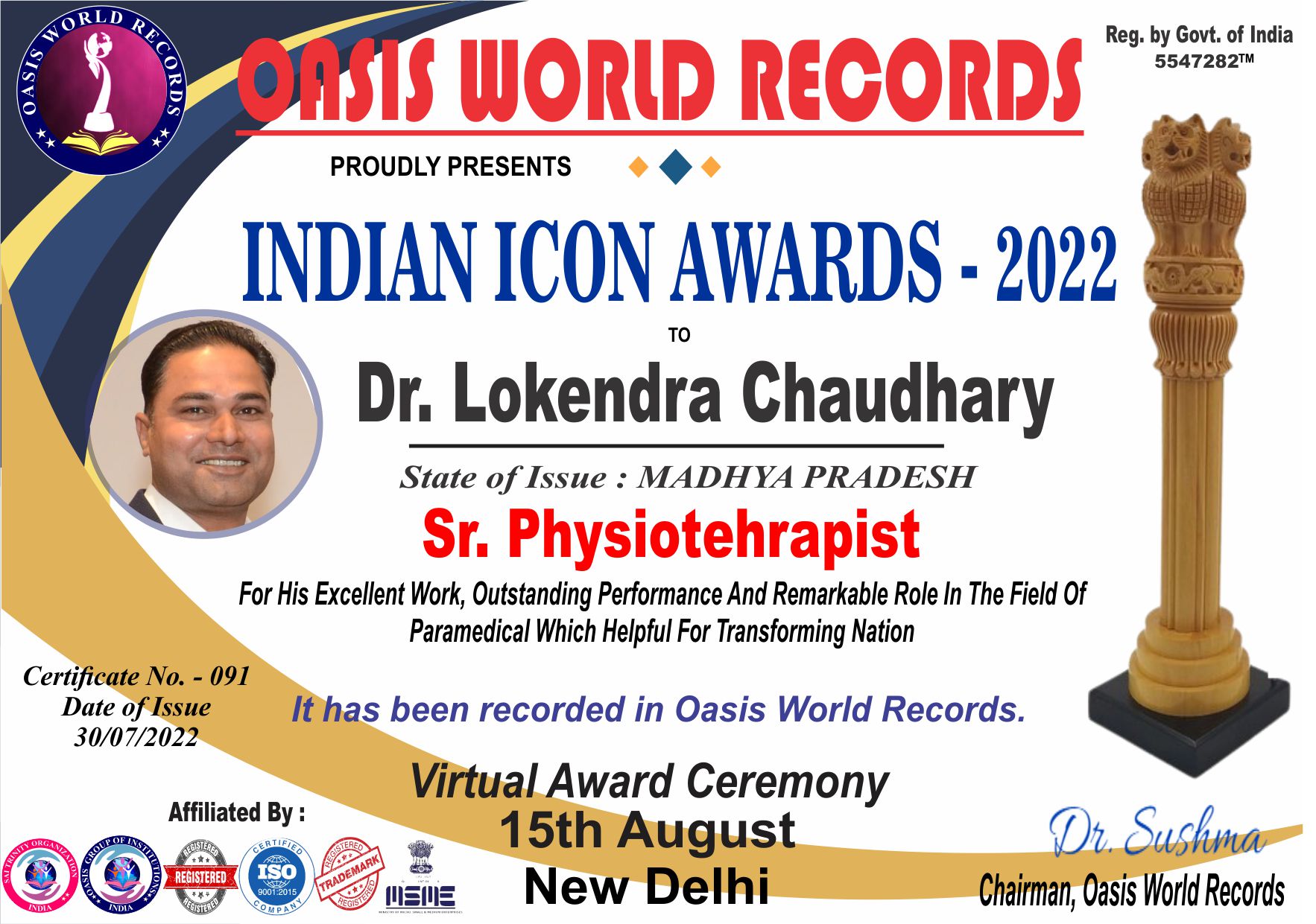 Indian Icon Award 2022 presented to Dr. Lokendra Chaudhary