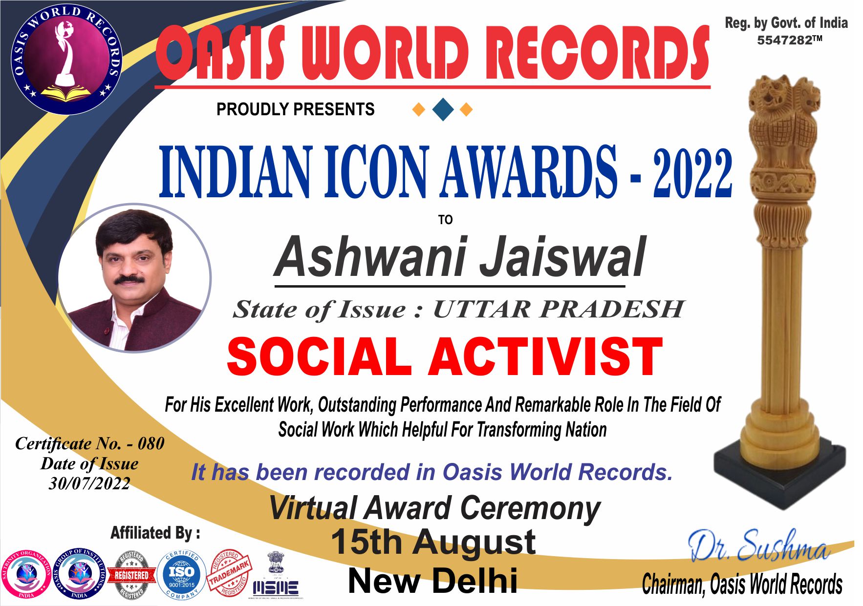 Indian Icon Award 2022 presented to Ashwani Jaiswal