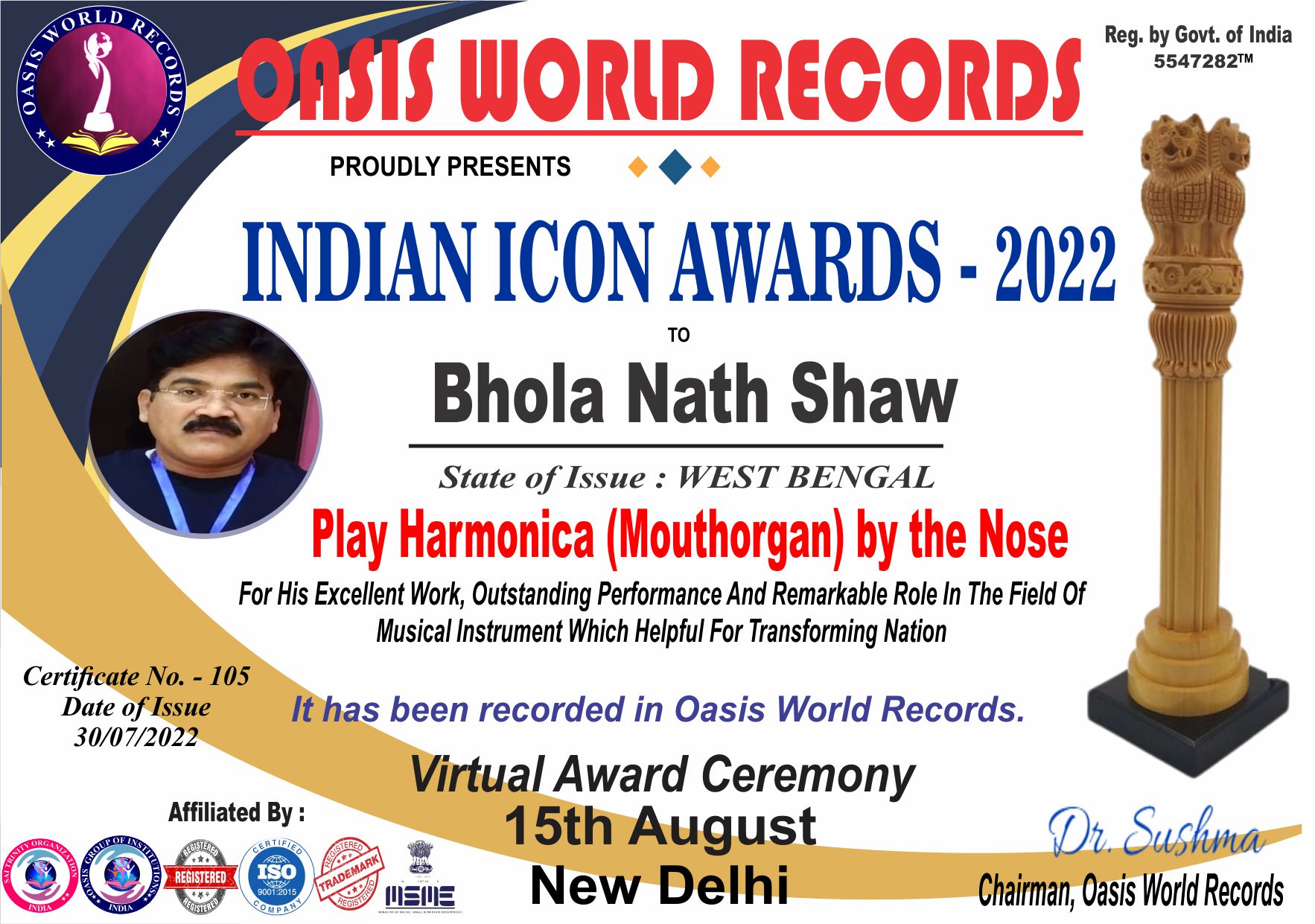 Indian Icon Award 2022 presented to Bhola Nath Shaw