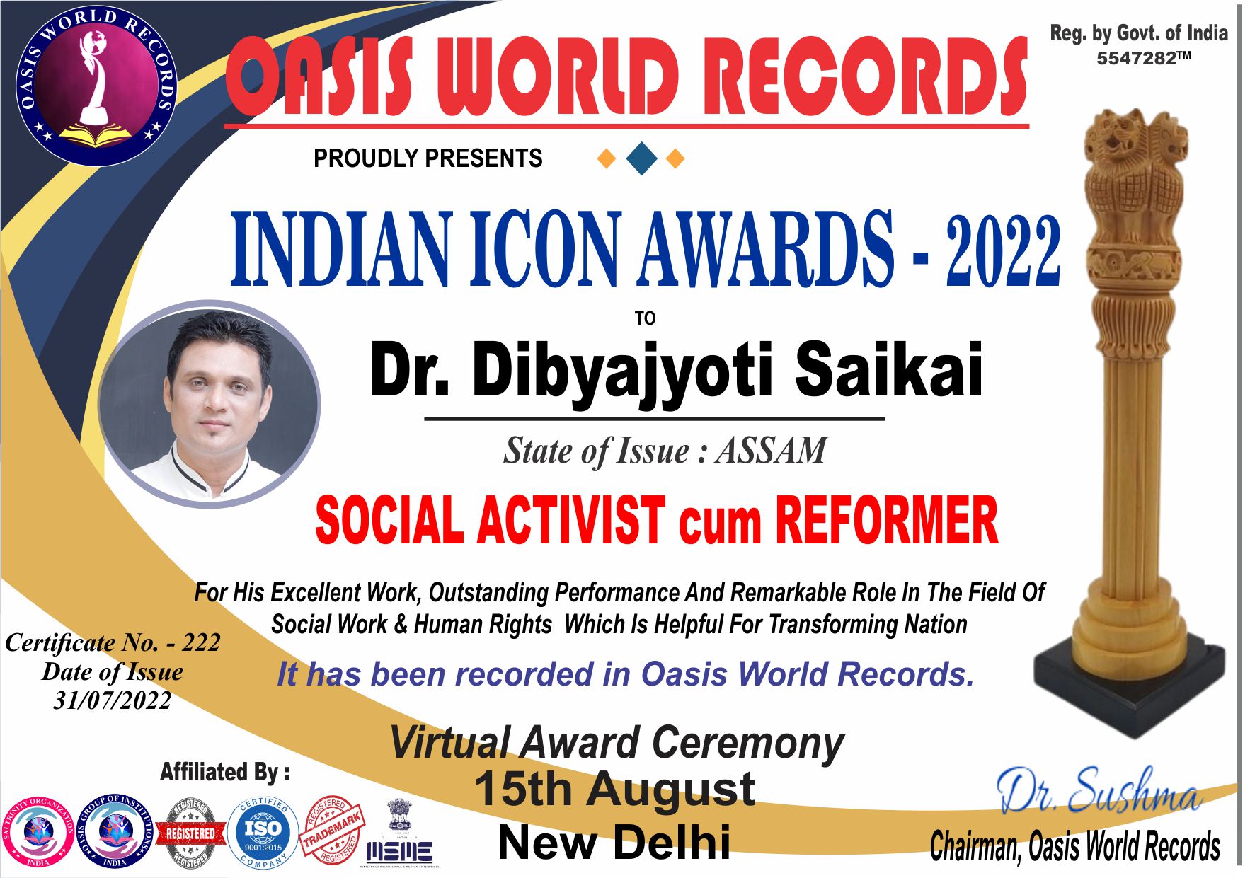 Indian Icon Award 2022 presented to Dr. Dibyajyoti Saikai