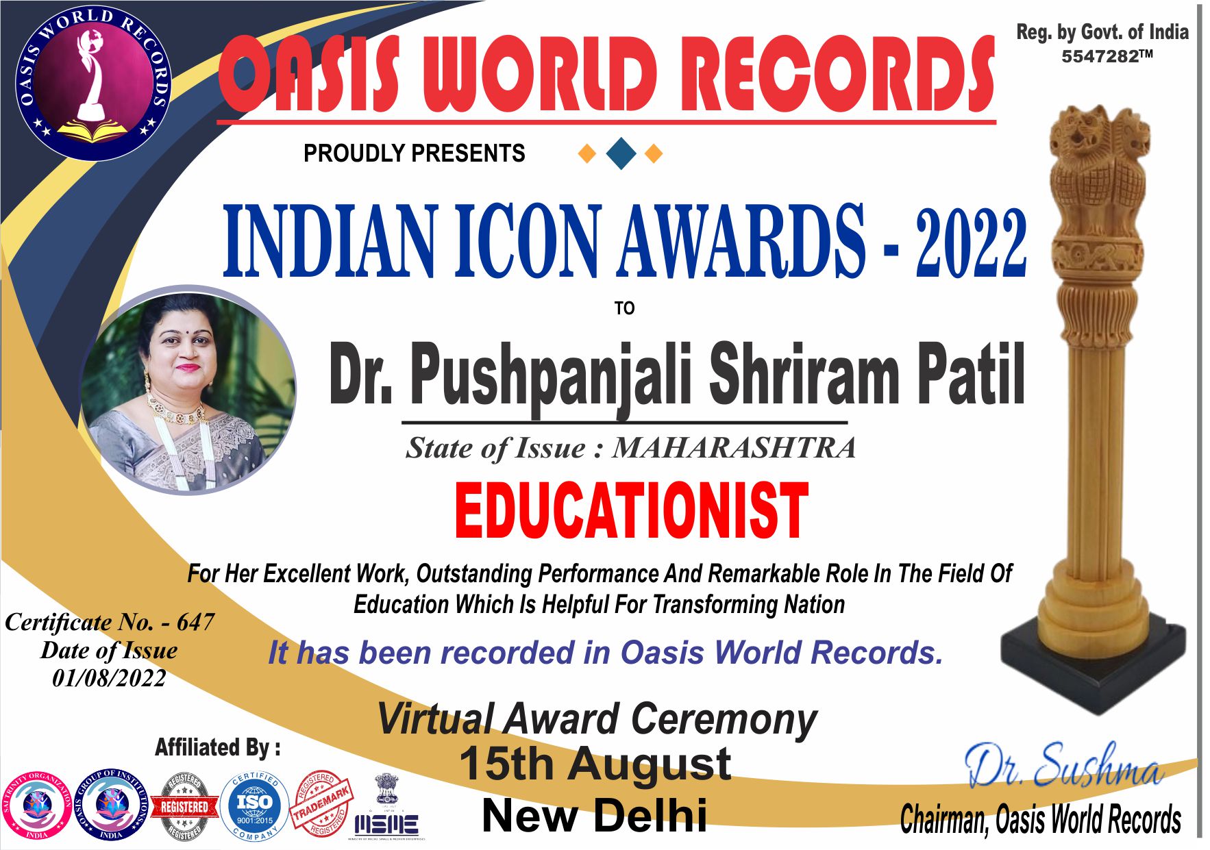 Indian Icon Award 2022 presented to Dr. Pushpanjali Shriram Patil