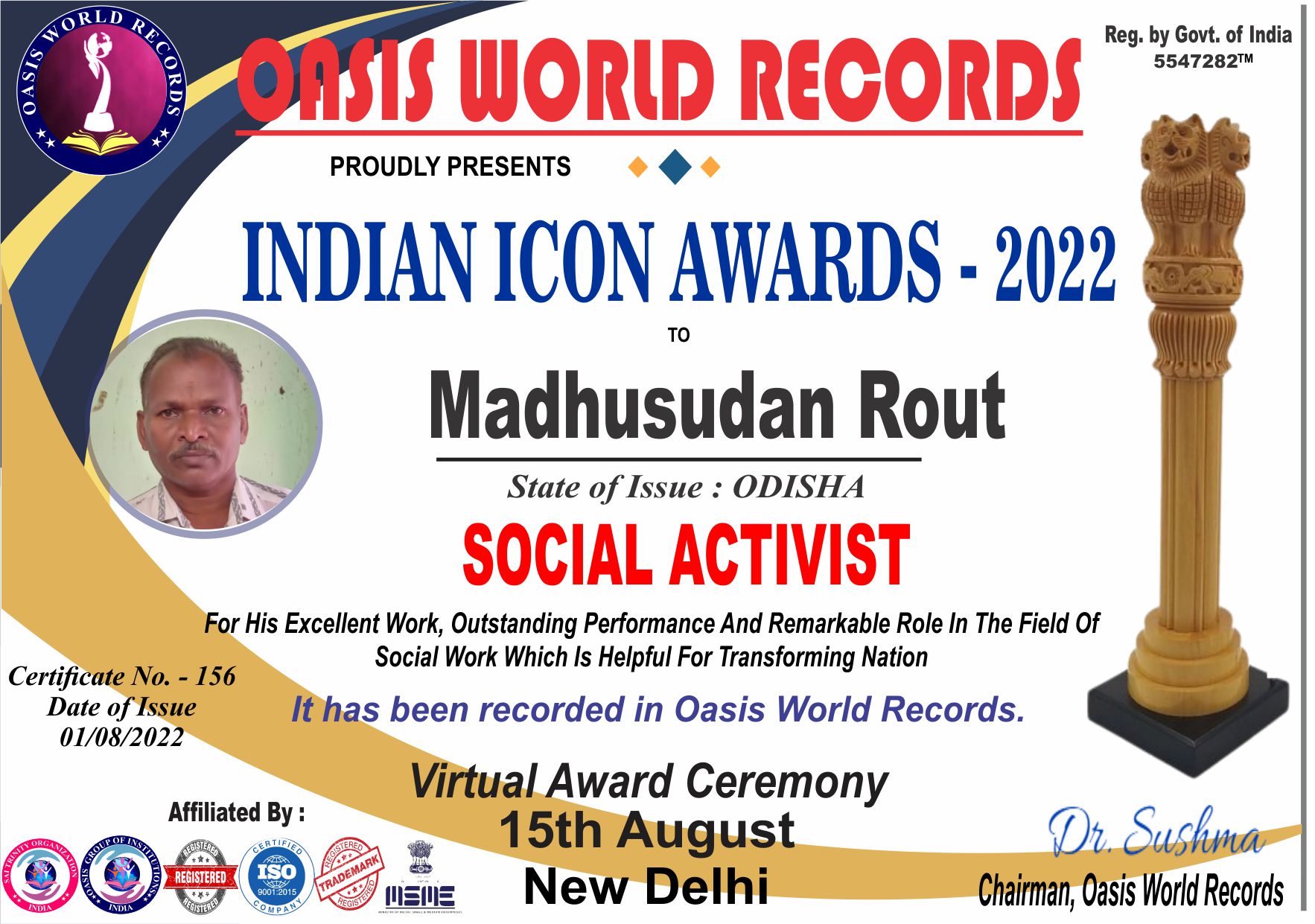 Indian Icon Award 2022 presented to Madhusudan Rout