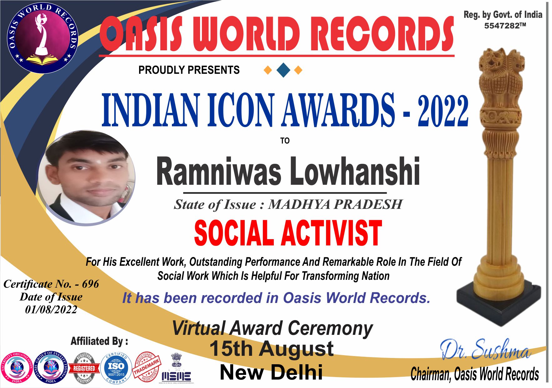 Indian Icon Award 2022 presented to Ramniwas Lowhanshi