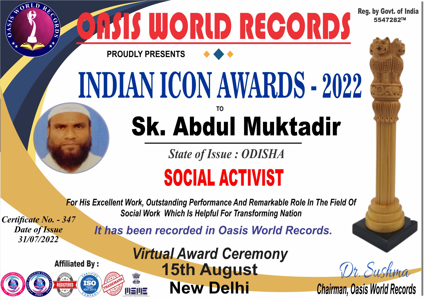 Indian Icon Award 2022 presented to Sk. Abdul Muktadir