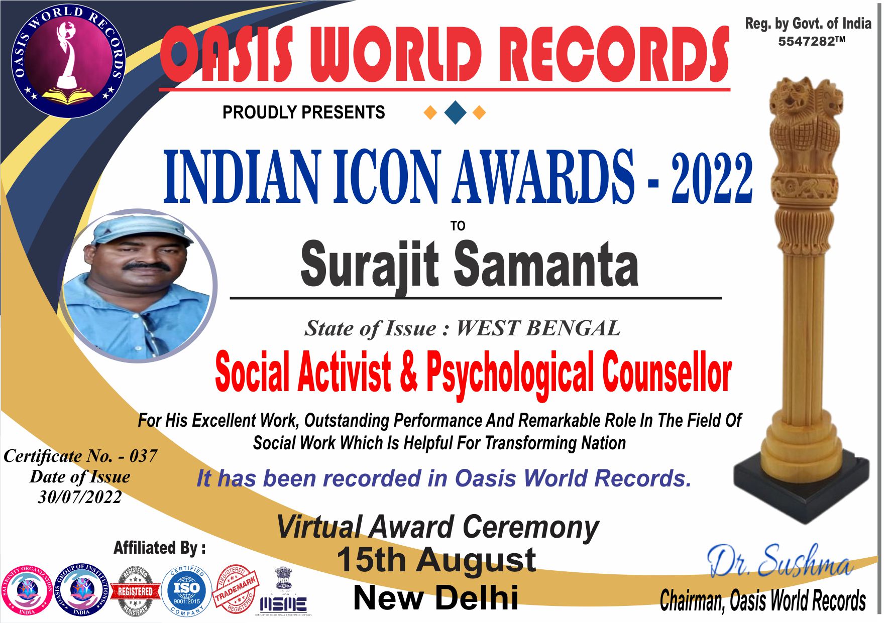 Indian Icon Award 2022 presented to Surajit Samanta