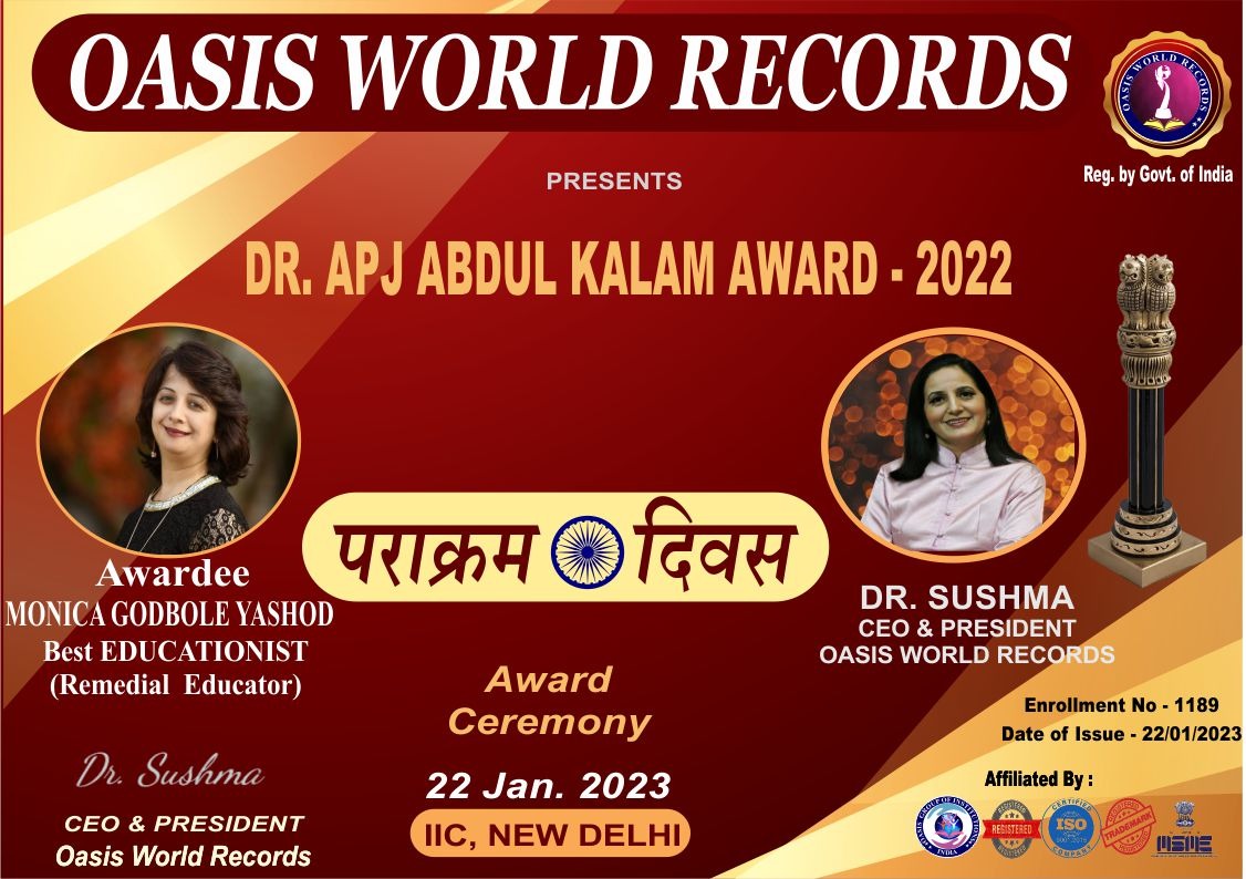 DR. A.P.J. Abdul Kalam Awardee- Monica Godbole Yashod