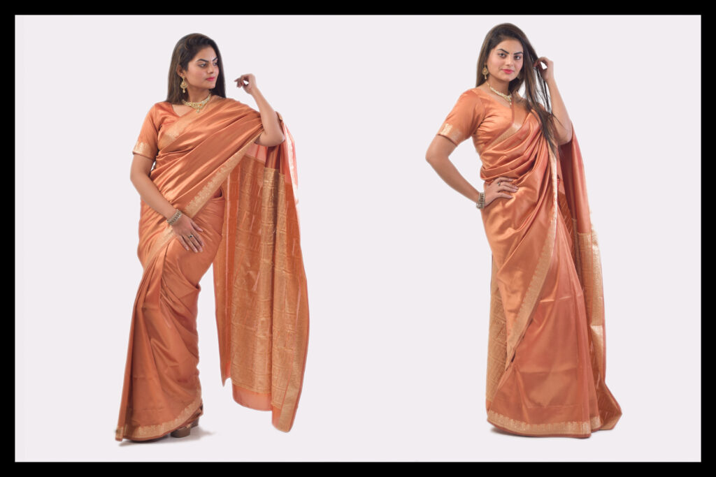 Polka Print Bollywood Georgette Saree (Orange, White)